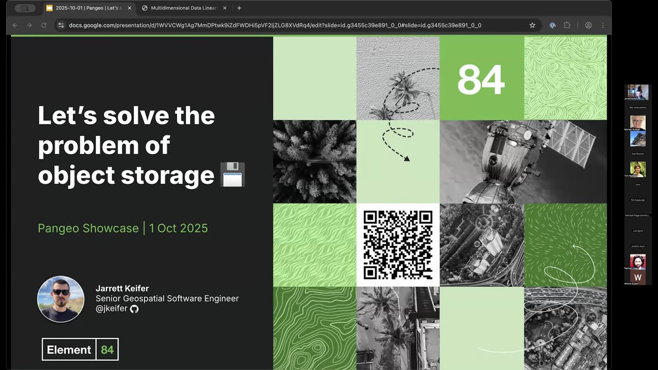 Please join us for the first showcase of the fall series, where we’ll be joined by Jarrett Keifer for a timely presentation and discussion, following his recent Cloud Native Geospatial blog post on Redefining cloud native with the Coalesced Chunk Retrieval Protocol.